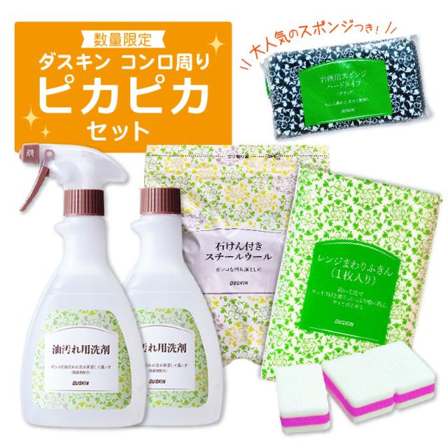 送料無料 ダスキン コンロ周りピカピカセット 大掃除 詰め合わせ 油汚れ洗剤 スチールウール メラミンスポンジ レンジ周りふきん スポンジ レンジフード 水垢 風呂掃除 キッチン 台所 シンク 換気扇 油よごれ