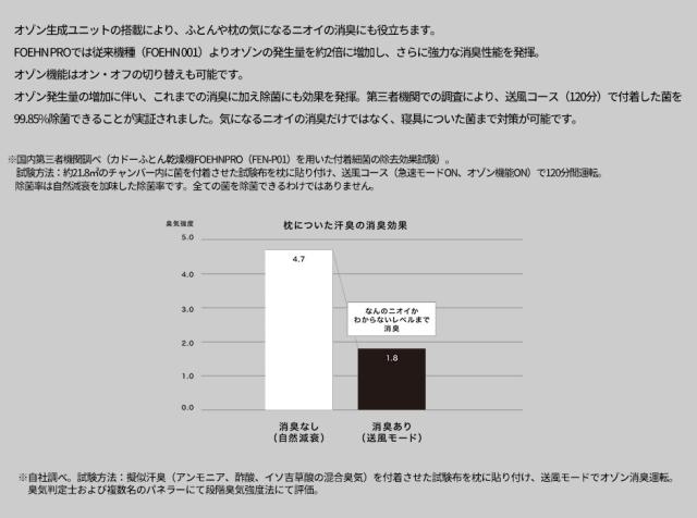 ◎商品特徴:オゾン生成ユニットの搭載によりふとんや枕の気になるニオイの消臭にも役立ちます。FOEHN PROでは従来機種(FOEHN 001)よりオゾンの発生量を約2倍に増加しさらに強力な消臭性能を発揮。オゾン機能はオン・オフの切り替えも可能です。