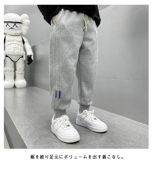 | 暖かい裏起毛スウェットパンツ 【100-170cm】 トレンドに左右されることのないなデザインのスウェットパンツ。 裾を絞り足元にボリュームを出す着こなし。 はくだけでトレンド感のあるファッションが楽しめる1枚です。 程よい厚みがあり、長いシーズン着まわしやすい素材です。 通園通学着としてはもちろん、お出かけコーデにもおすすめ。 | |