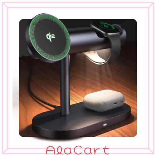 iVANKY Qi2認証 4in1 充電器 ワイヤレス充電ステーション MagSafe マグネット Wireless Charging Station 用ナイトランプ付き ポータブル