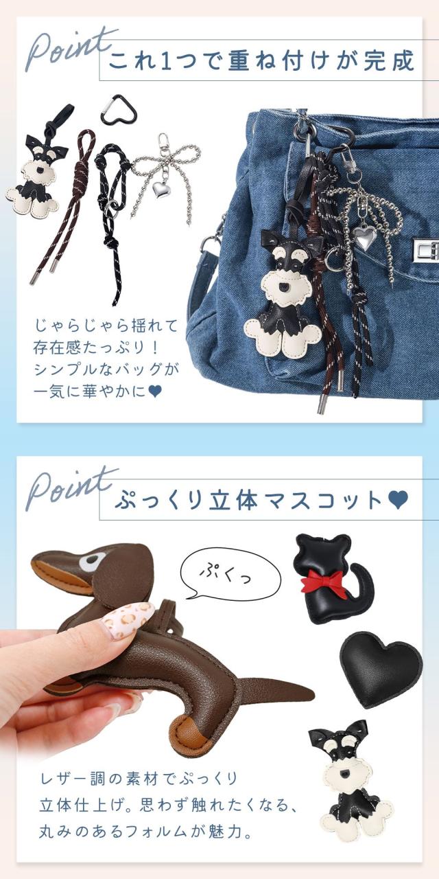 パラコード/チャーム/マスコット/じゃらじゃら/にぎやか/アクセント/柔らか/立体/おしゃれ/かわいい/コーデ/女の子/女性/レディース/バッグ/ストラップ/重ね付け/華やか/ぷっくり/レザー調/ダックスフンド/シュナウザー/ネコ/ハート/カジュアル/大きめ/キーホルダー/太め/丈夫/カラフル/編み込み/バッグチャーム/バッグアクセサリ/スマホ/鍵/ギフト/プレゼント/カスタム/アレンジ/カラビナ/飾り/