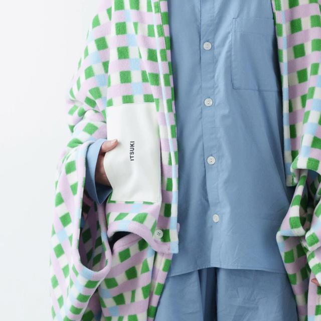 itsukiの「blanket:格子」は、日本の老舗工場で丁寧に仕立てられた、ボタンとポケット付きの機能派コットンブランケットです。サイドのボタンを閉じれば、袖のあるガウン(着る毛布)に早変わり。あたたかさを纏ったままベッドから抜け出し、そのまま夢のような朝を過ごせる2WAY仕様です。スマートフォンが収まる帆布ポケット付きで利便性も抜群。2枚繋げればキングサイズとしても活躍します。熟練の職人がジャガード織を起毛させた優しい肌触り。ヨコ糸に綿100%を使用し、静電気が起きにくく、敏感肌の方やお子様も安心です。土台にはポリエステルを配合し、軽さと乾きやすさ、型崩れしにくさを実現しました。ご自宅での贅沢なひとときや、大切な方への特別なギフトに最適です。