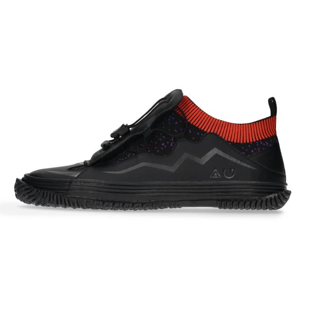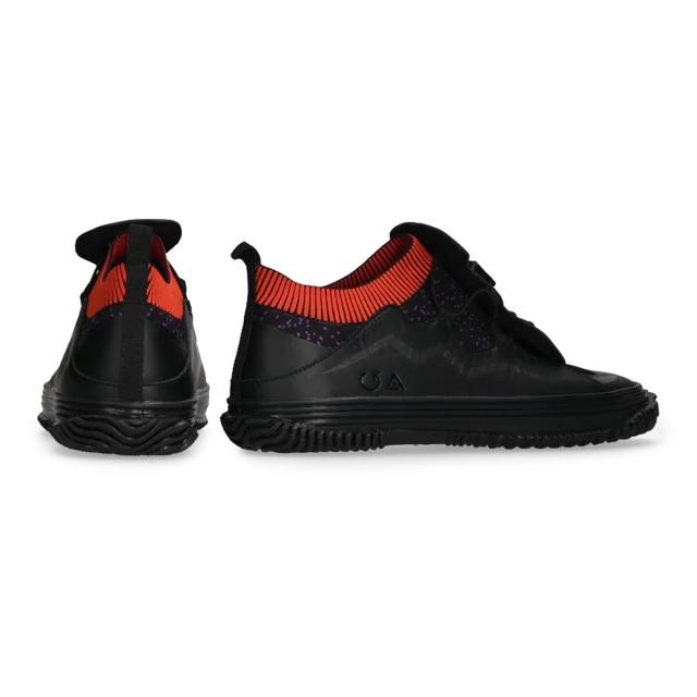 廃棄を出さないニットアッパーによる柔軟なフィット感に加え、波模様のカッティングや△ロゴの型押しで作品性を演出。RUBEAR CNFソールを搭載し耐摩耗性も向上。バルカナイズ製法で仕上げた、特別なコラボレーションモデルです。