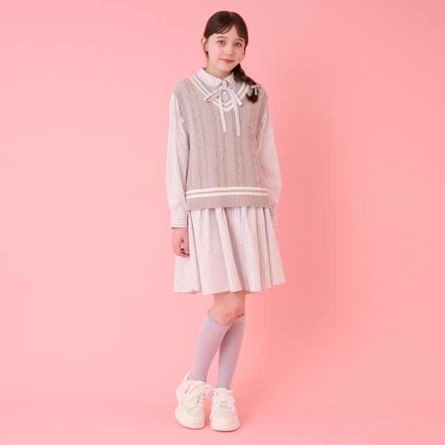 ■ケーブル編みのニットベストとシャツワンピースのセットです。