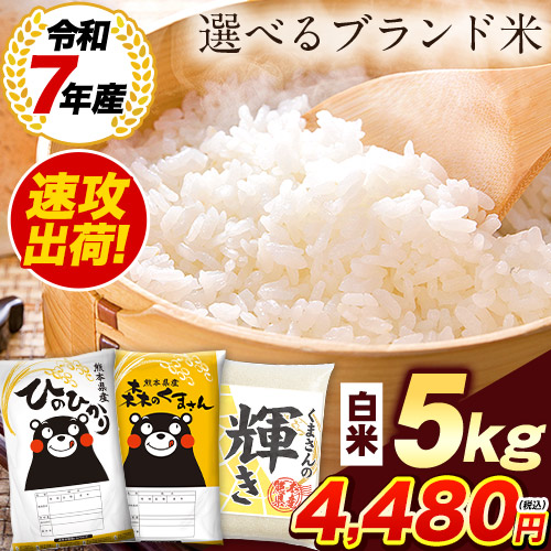 今なら速攻出荷 令和7年 産 お米 熊本県産 三大ブランド米 選べる 白米 5kg ひのひかり 森のくまさん くまさんの輝き 送料無料 単一原料米 ひのひかり コメ 精米 備蓄米 ではありません《1-5営業日以内に発送予定(土日祝日除く)》