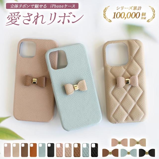 スマホケース スマホカバー iPhoneケース【レザーハードorキルティングケース×立体リボン】iphone ケース カバー ハードケース アイフォン 携帯 くすみ 韓国 レザー 革 皮 PU 無地 キルト ギフト メール便送料無料 受注生産