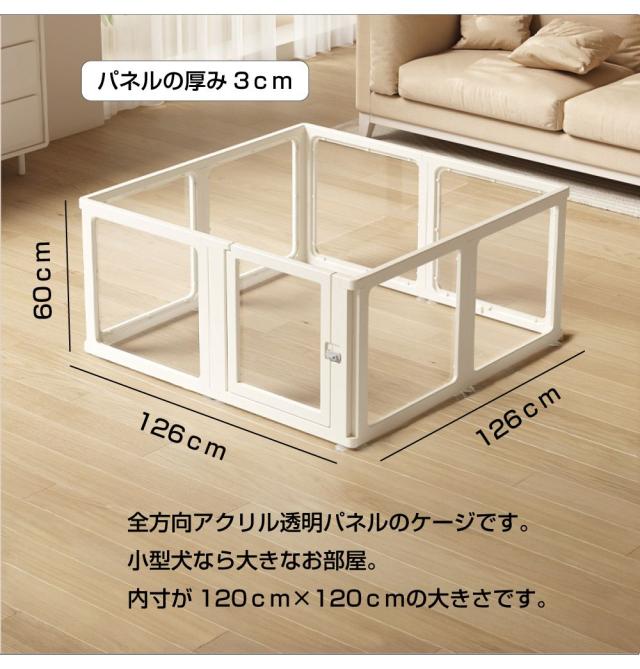 ペットケージ ペットサークル 犬 ドア付き ペットファースト ホワイトハウス デラックスルーム アクリルパネルタイプ 120×120cm WH-AC-120120 サークル ケージ ゲージ 折りたたみ 室内用 ペットフェンス 組み合わせ 拡張 増設 柵 ドッグサークル 猫 小型犬