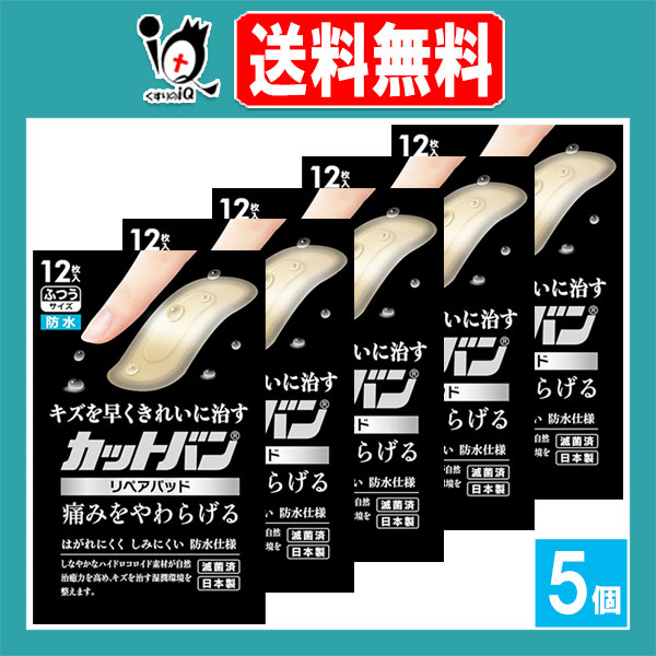 【管理医療機器】カットバンリペアパッド ふつうサイズ 12枚入×5個セット【祐徳薬品工業】キズを早くきれいに治す 痛みをやわらげる 軽度の切り傷 あかぎれ さかむけ 靴ずれ 絆創膏 家庭用創傷パッド ハイドロコロイドパッド
