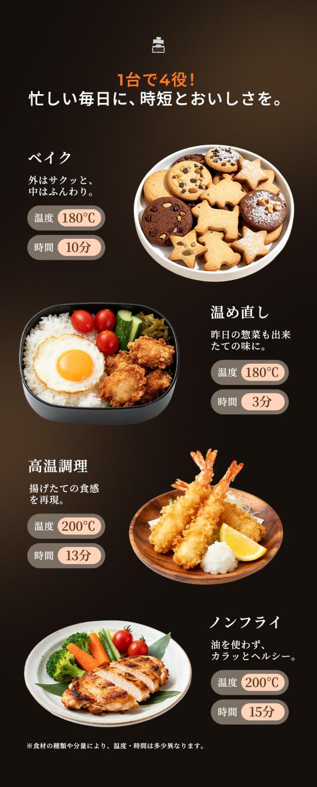 ムラなく加熱し、油を使わず外はサクッと中はふんわり。