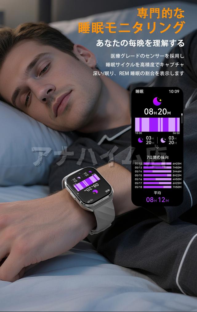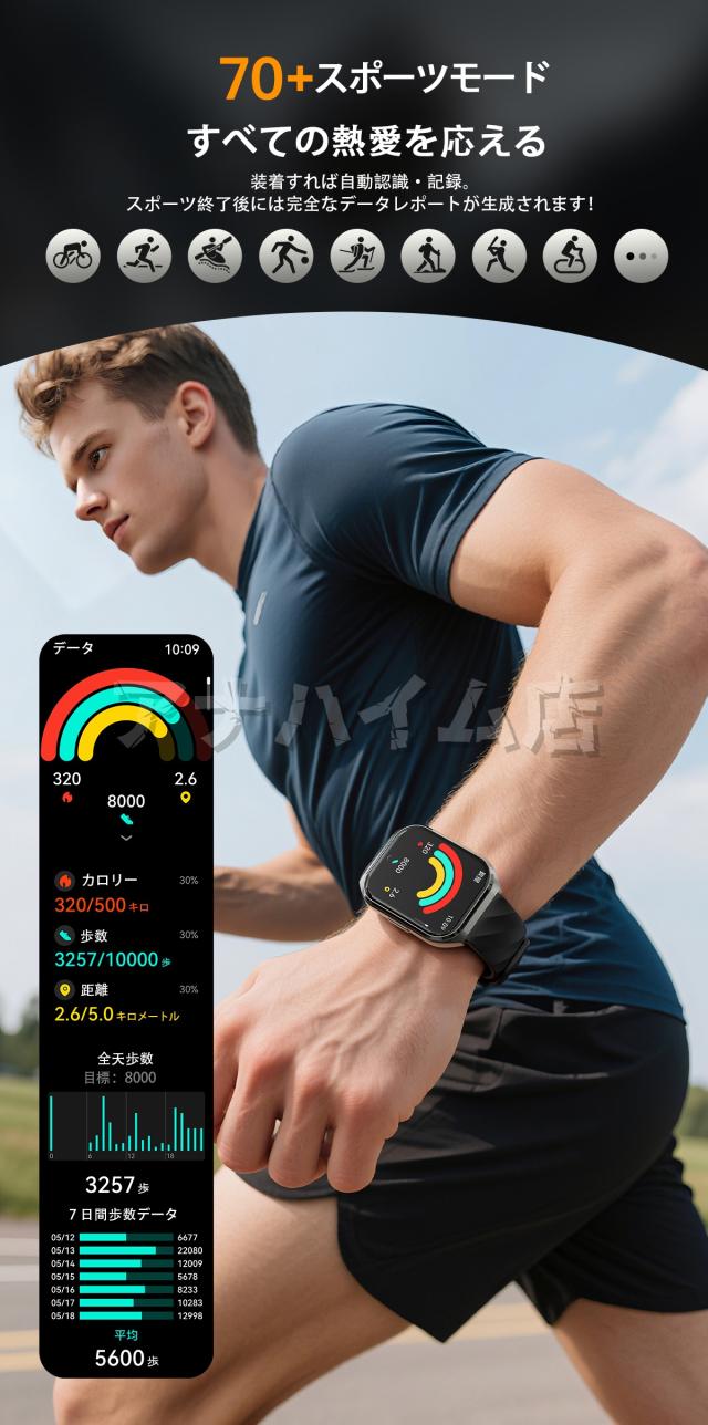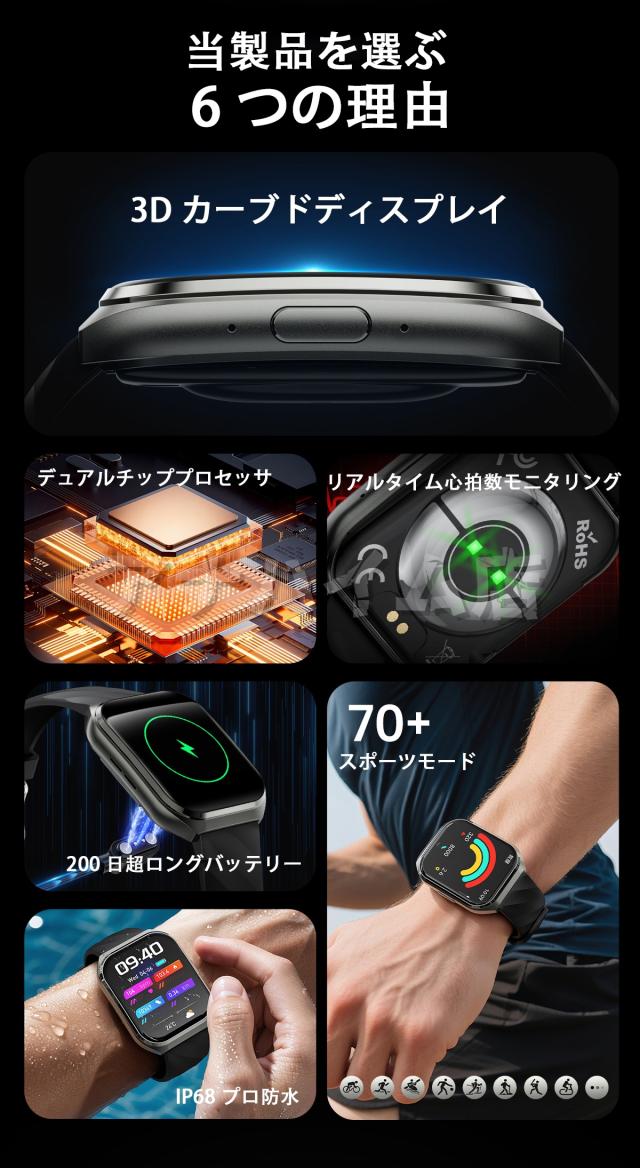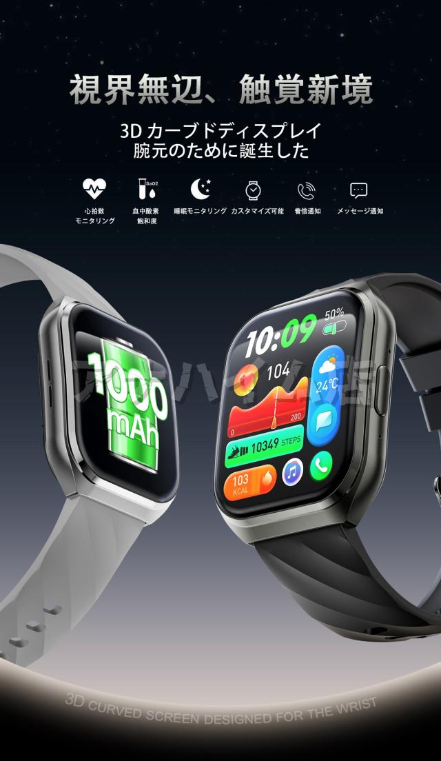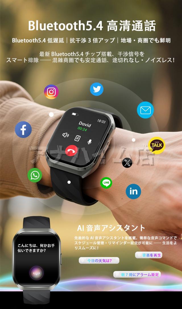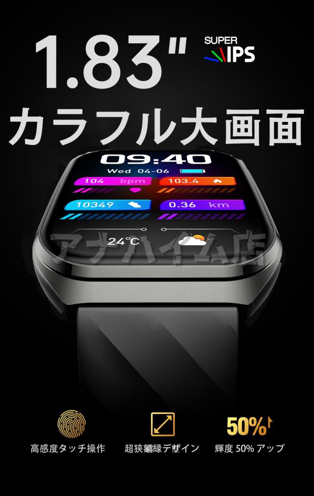 スマートウォッチ 日本製センサー 心拍数 血中酸素測定 自動科学睡眠質監視 Bluetooth5.4 1.83インチ 1000mAhバッテリー 着信通知 通話可能 IP68防水 プレゼント