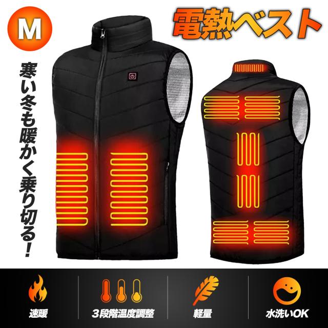 電熱ベスト Mサイズ グラフェン採用 アルミ保温シート内蔵 2WAY給電 USB/乾電池式 3段階調整 丸洗い可 インナーベスト 電熱ウェア ブラック メンズ レディース
