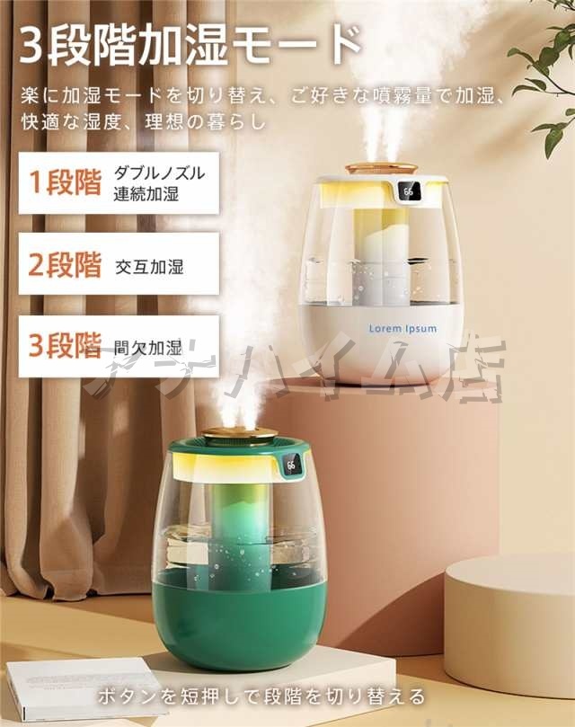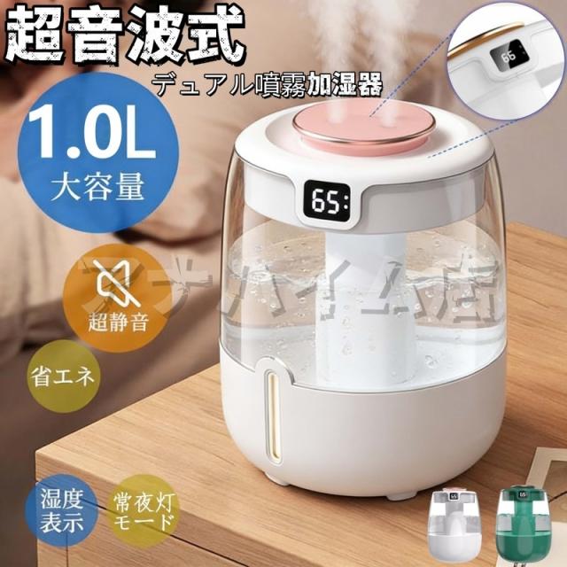 卓上 加湿器 超音波式加湿器 空気清浄器 uv除菌ライト ダブルノズル 湿度表示 寝室 事務室用 業務用 ミスト量3段階 リビング ナノミスト 細霧 小型 静か 超静音 卓上加湿器 空気浄化 車用 エコ 水タンク 高齢者 敬老の日 プレゼント 家庭用 子供部屋 職場 ウイルス対策 空気清浄