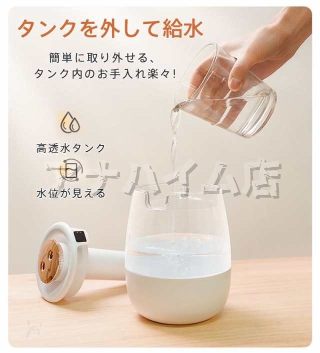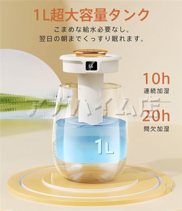 1L大容量:頻繁に給水が不要、一回の満給水で20時間連続加湿が可能