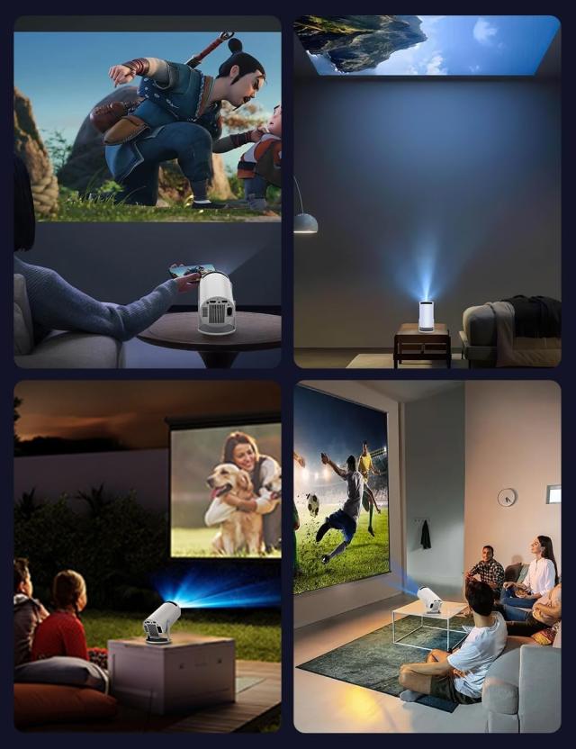 小型プロジェクターのスタンドが270°回転するため、三脚なしで自在に投影角度を調整可能です。天井 プロジェクターは壁や天井への投影もでき、座ったまま、寝転んだままなど、お好みのスタイルでリラックスしながら映像をお楽しみいただけます。projectorは自動台形補正機能を搭載し、投影角度の変化に合わせて瞬時に画像を補正します。手動による4角台形補正にも対応し、あらゆる設置条件で理想的な矩形画面を実現します。