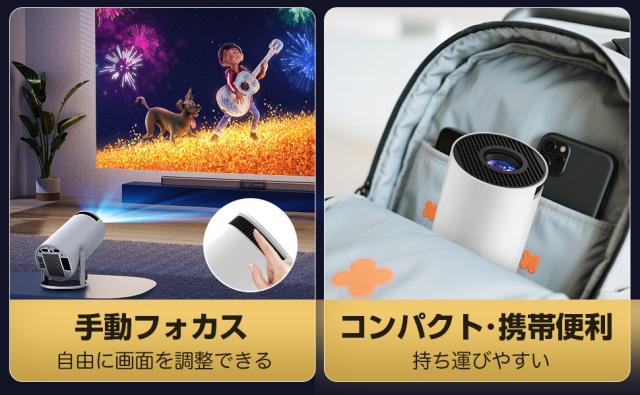 ぷろじえくたー 家庭用 小型は18,000ルーメンの高輝度とフルHD(1920×1080)のネイティブ解像度を実現します。プロジェクター 4kは4K入力信号にも対応し、NTSC色域99%以上、コントラスト比12,000:1の高精細な画質で、鮮明で奥行きのある映像をお届けします。プロジェクター 天井は白壁への投影でも美しい映像表現が可能です。拡散光技術とブルーライト軽減設計により、お子様からご年配の方まで、目に優しい長時間視聴をサポートします。※フォーカス調整リングでピントを最適化し、くっきりとした画像をお楽しみください。