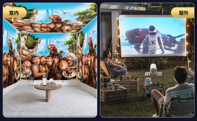 プロジェクターにはAndroid TV 12.0がプリインストールされており、Prime Video、YouTube、Netflixなど8,000以上のアプリから、50万本を超える映画やテレビ番組にアクセス可能です。Google Play ストアやApp Storeから好みのアプリを追加インストールすれば、家族や友人と一緒に多彩なエンターテインメントをお楽しみいただけます。また、プロジェクター 家庭用はショートスロー設計により、わずかな距離でも50〜300インチの大画面投影を実現しま。没入感あふれる視聴体験をご提供します。※一部アプリやコンテンツ視聴時は、リモコンのマウスモードへの切り替えが推奨されます。