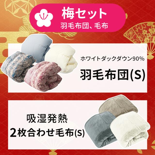 【2026年福袋 梅】 豪華2点セット 羽毛布団 毛布 福袋 シングル ロング 日本製羽毛布団 お買得 掛け布団 ホワイトダックダウン90% エクセルゴールドラベル 認定商品 寝具 あったか 送料無料