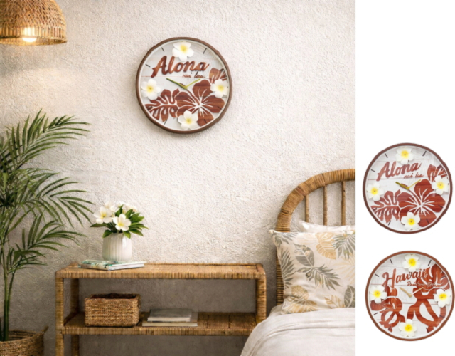 ハワイアン雑貨 時計 インテリア ハワイ 壁掛け クロック ハウオリプルメクロック かわいい おしゃれ ハイビスカス ホヌ ハワイアン ギフト お祝い プレゼント
