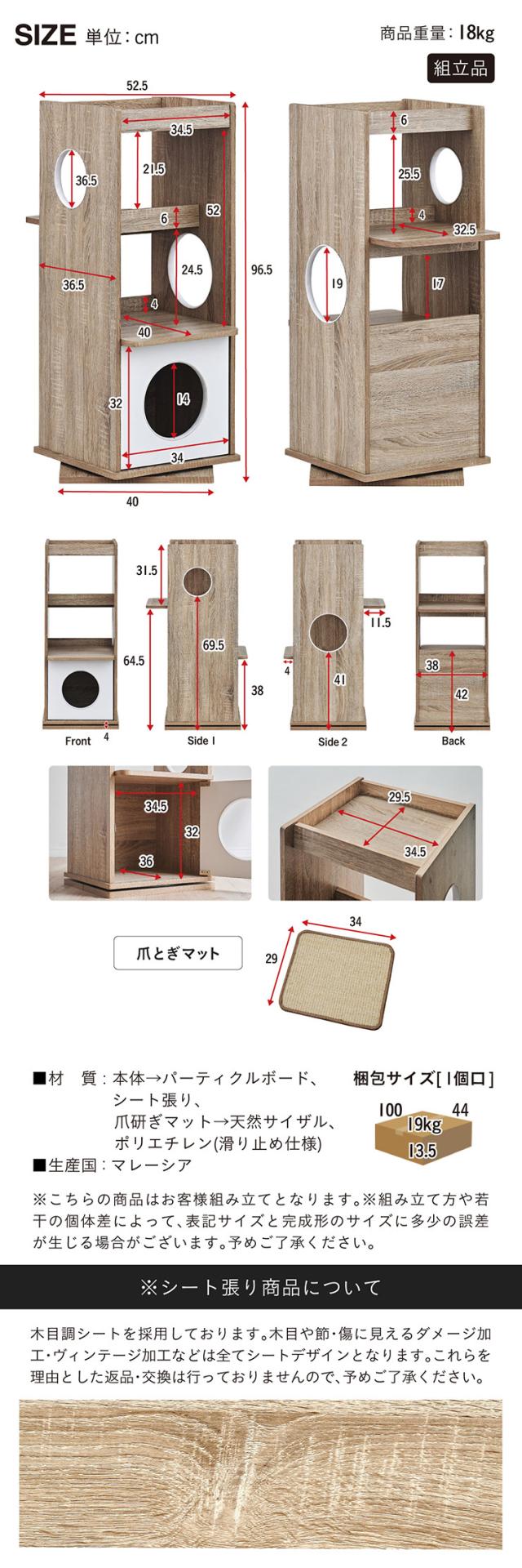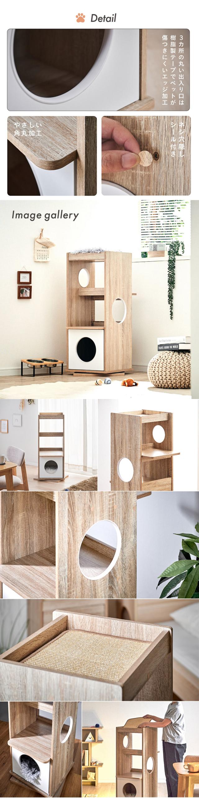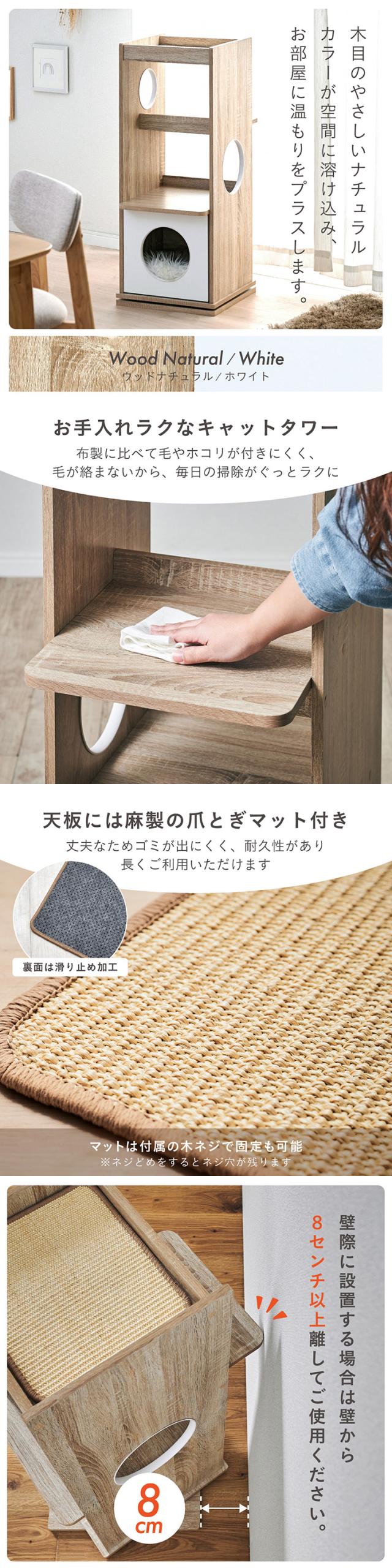 キャットタワー スリム 木製 おしゃれ 猫タワー 猫用 回転式 爪研ぎマット付き Tritto(トリット) ねこタワー 大型猫 据え置き 多頭飼い シニア 猫ハウス キャットハウス 爪とぎ 省スペース 階段式