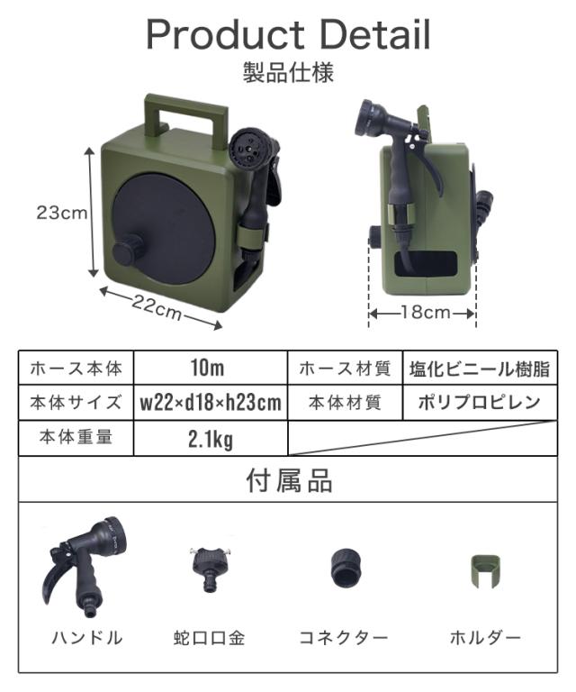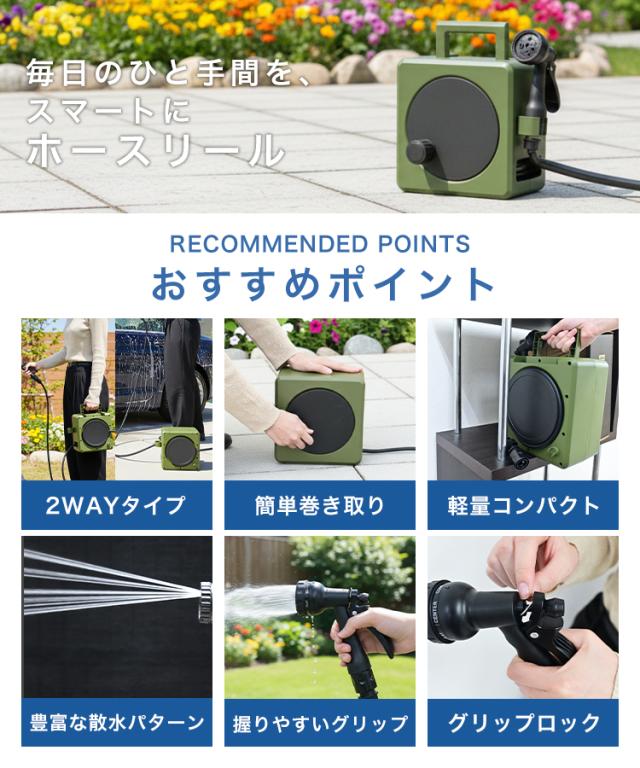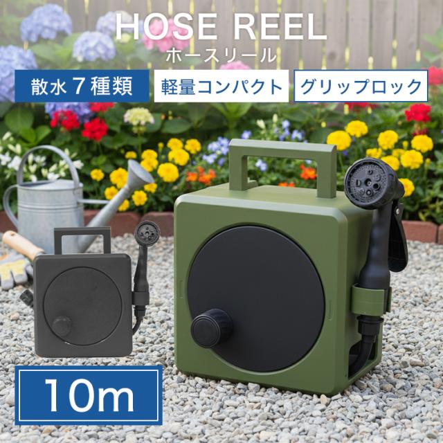 ホースリール ホース 10m 家庭菜園 観葉植物 2WAY 据え置き 手持ち 水道ホース 水まきホース 散水7パターン 散水ホース 洗車ホース 蛇口ニップル 巻き取り ガーデニング 大掃除 水まき 洗車 散水ノズル 凍結防止 絡まない 頑丈 軽量 コンパクト 送料無料