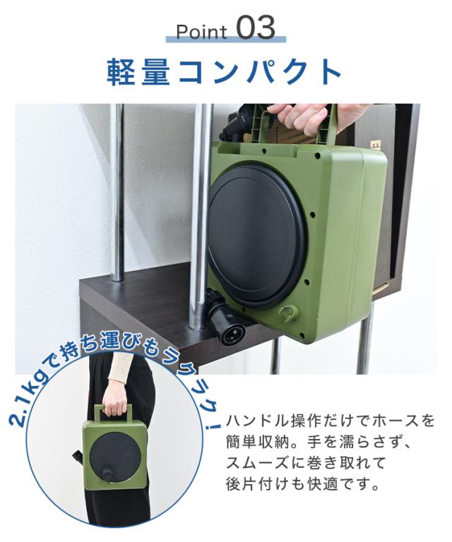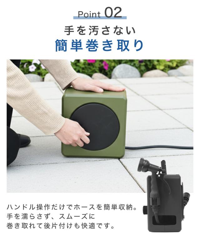 手を汚さず簡単にホースを収納できる巻き取り式を採用♪