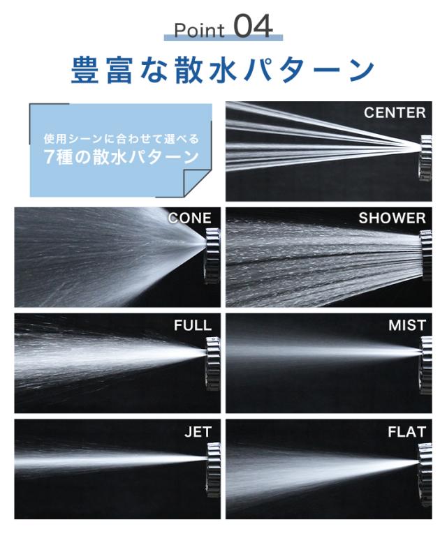 細かな部分から広範囲まで、用途に応じた散水パターンが選べます!!