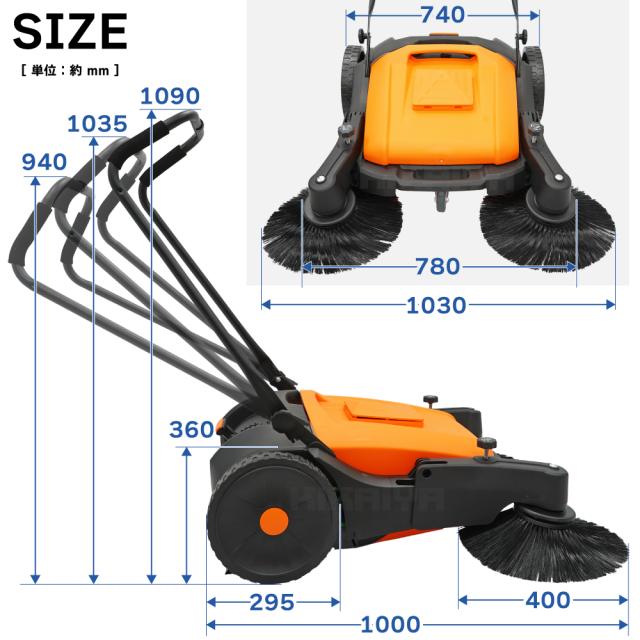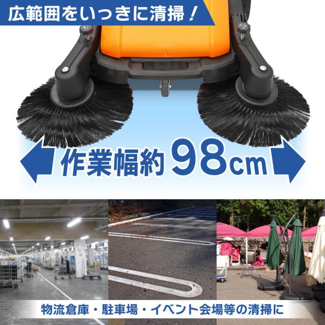 掃除スイーパー 45L 手押し式 大型 大容量 広範囲 作業幅980mm 屋外 屋内 電源不要 手動掃除機 業務用 KIKAIYA