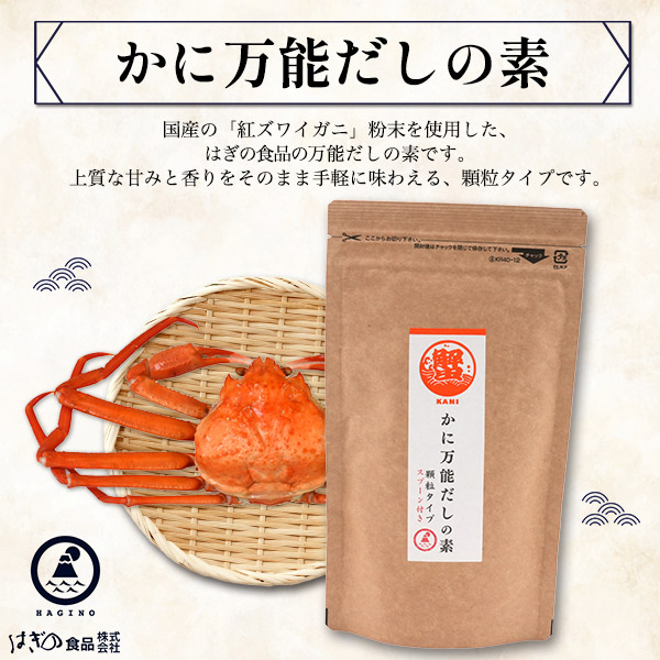 はぎの食品 かに万能だしの素 顆粒 74g 保存に便利 チャック付き スタンド袋 専用スプーン付属 みそ汁 出汁巻き うどん 茶漬け 煮込み料理など 万能調味料 顆粒だし ご褒美 グルメ 和風調味料 食品 常備調味料 ポイント消化 送料無料 ダシ ポイント消化 蟹粉末