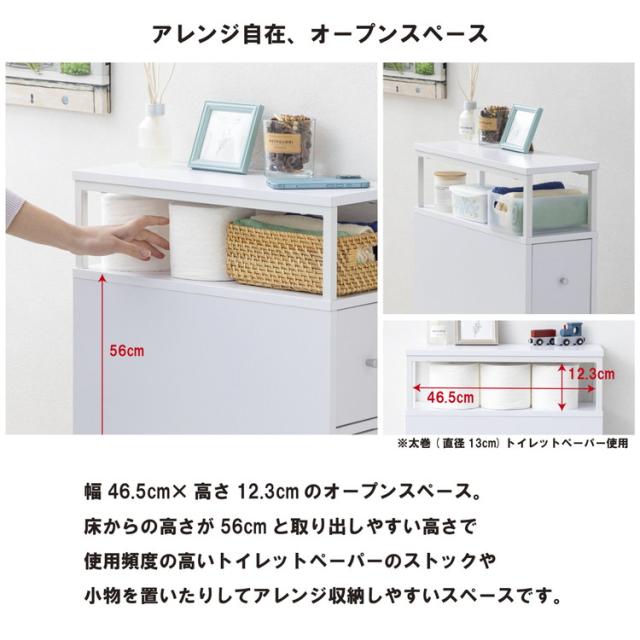 多機能トイレラック オープンタイプ 省スペース 幅51.7cm 引き出し収納 トイレブラシ収納 高さ調整棚 キャスター付き メラミン天板 スチール脚 トイレ収納ラック ホワイト【送料無料】