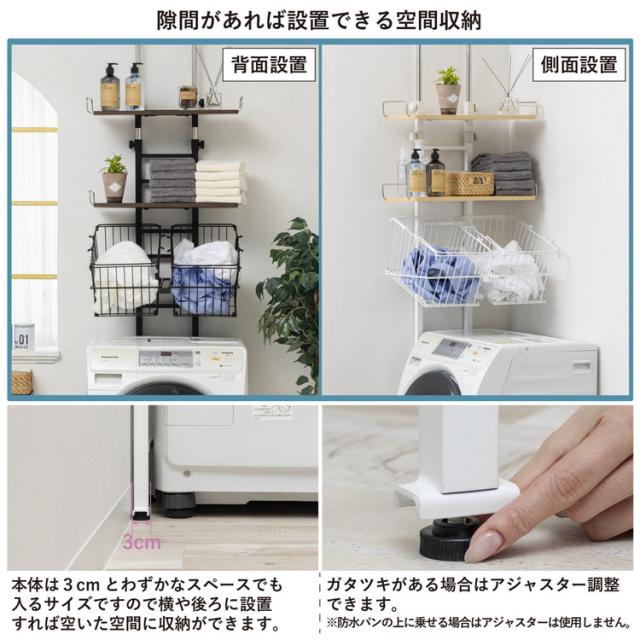 バスケット付き突っ張り洗濯機ラック