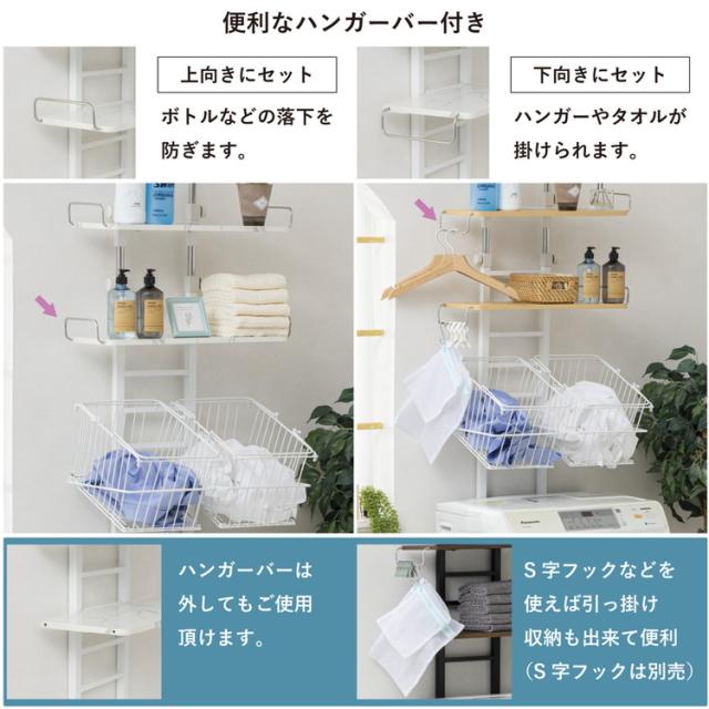 商品名:バスケット付き突っ張り洗濯機ラック