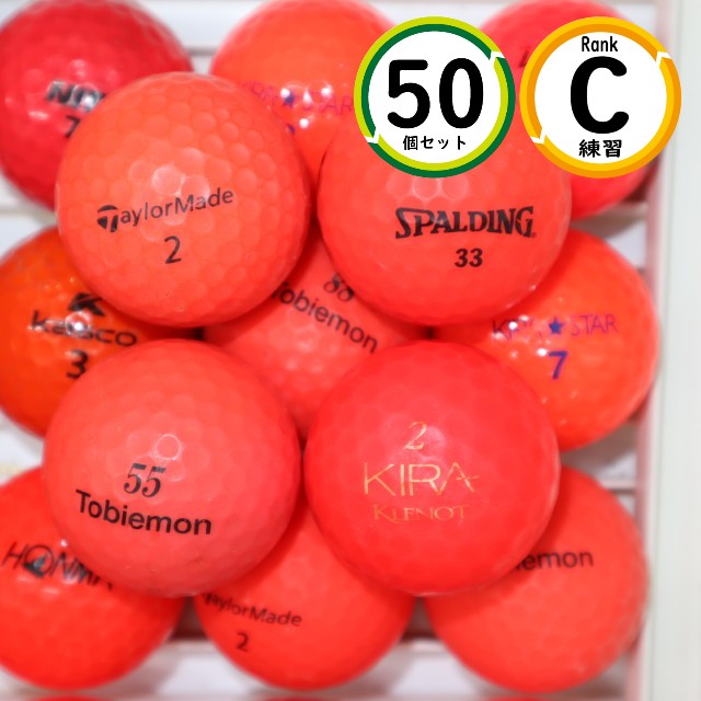 50個 カラーボール レッド Cランク 練習用 ロストボール メーカー混合 ゴルフボール 送料無料 snt