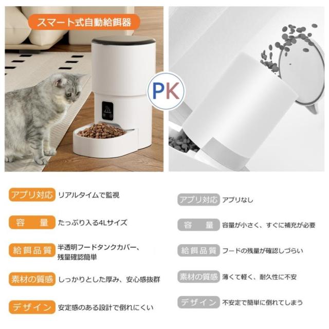 自動給餌器 猫 犬 自動餌やり機 4L 大容量 防水耐摩耗 タイマー機能 多頭 ペット 餌 手動自動両用 栄養バランス 専用アプリ 操作簡単 自動給餌 停電対応