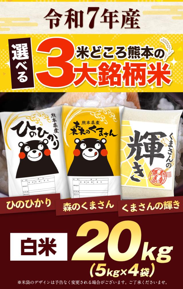 米 20kg お米 令和7年 産 熊本県産 三大ブランド米 選べる 白米 5kg×4 ひのひかり 森のくまさん くまさんの輝き 送料無料 単一原料米 ひのひかり コメ 精米 2025年 備蓄米 ではありません《1-3営業日以内に発送予定(土日祝日除く)》