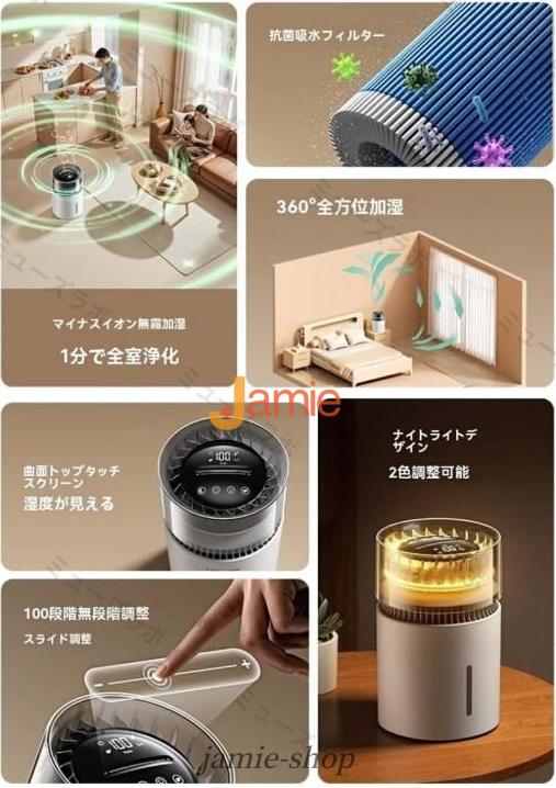 加湿器 空気清浄加湿器 ミストフリーマイナスイオン浄化 100段階調整 電源USB直接プラグ デスクトップ 空焚き防止 オフィス 寝室 子供部屋 省エネ 床置き 卓上