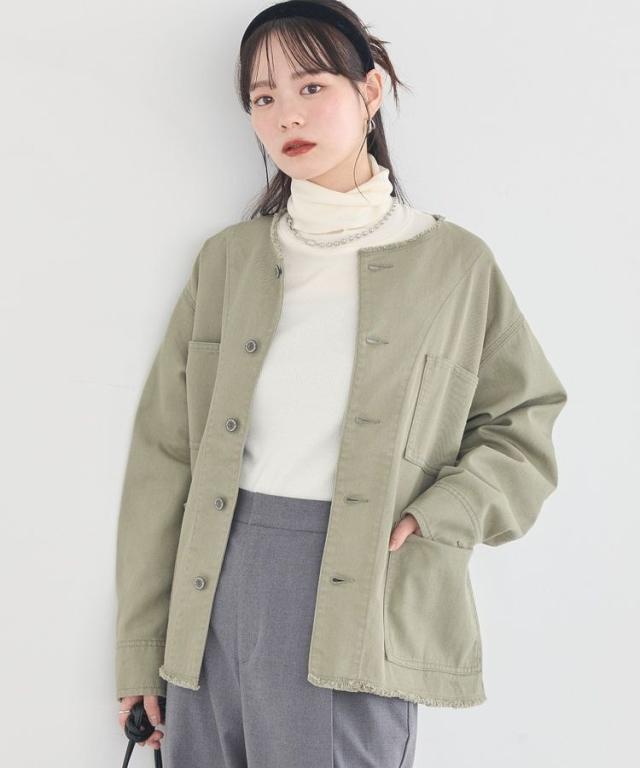 気負わず羽織れて、大人の可愛さが引き立つ一枚衿なしのデザインが全体をすっきりとまとめ、やさしい印象に仕上げてくれます。さりげなく施されたフリンジが、シンプルな中にほどよい遊び心をプラスします。見た目以上に軽やかな着心地で、長時間着てもストレスを感じにくいのが魅力です。ポケット付きなので実用性も高く、普段使いにぴったりです。カットソーやブラウスなど幅広いトップスと相性が良く、着回し力にも優れています。デニムと合わせれば程よくカジュアルに、きれいめボトムと合わせれば落ち着いた印象になります。毎日のコーディネートに自然と取り入れやすく、大人の可愛さをさりげなく引き出してくれるアイテムです。