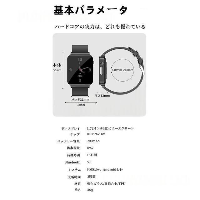 スマートウォッチ 日本製センサー 心電図 血圧測定 酸素濃度 体温 心拍数 睡眠管理 LINE通知 血中酸素 24時間健康管理 着信通知 腕時計 iPhone Android