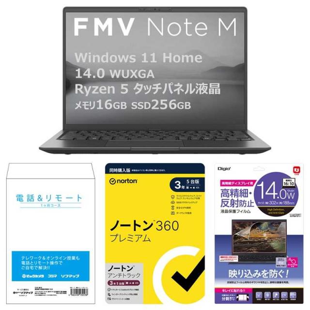 新生活 PCセット 富士通 FMV Note Mシリーズ ベーシック4点セット【FMV Note M・液晶保護フィルム・ノートン・電話&リモート サポート】
