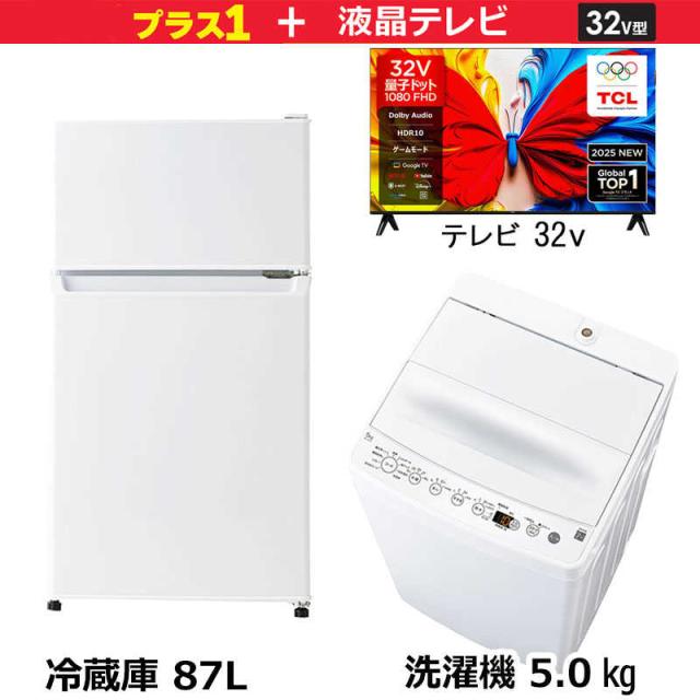 新生活家電セット2点 ホワイト 白 【プラス 32V型液晶テレビ付】 冷蔵庫 / 洗濯機 / 液晶テレビ[一人暮らし家電ベーシック2点セット] (標準設置無料)