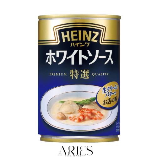 商品紹介 ハインツの業務用ホワイトソースは1974年の発売以来、ホテルやレストランの洋食で親しまれてきました。特選はそんなお店の味わいがご家庭で楽しめる本格派のソースです。生クリームとバターを贅沢に使用し、白ワインで仕上げた上質なソースが素材のおいしさを引き立てます。栄養成分100gあたり:水分 79.4g、たんぱく質 1.5g、脂質 9.3g、炭水化物 8.7g、灰分 1.1g、ナトリウム 310mg、食塩相当量 0.8g 原材料・成分 生クリーム、小麦粉、脱脂粉乳、とうもろこし油、ショートニング、バター、野菜(たまねぎ、セロリ)、白ワイン、食塩、チキン風味ブイヨン、砂糖、たん白加水分解物、香辛料、酵母エキス/増粘剤(加工デンプン)、調味料(アミノ酸等)、(一部に小麦・乳成分・大豆・鶏肉を含む)