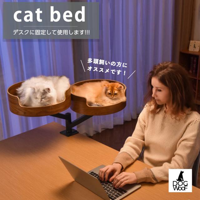 クランプ式 猫 ベッド 机 デスク キャットベッド 卓上ベッド テーブルの厚さ9cmまで対応 ベッド内径38cm 【2匹用】
