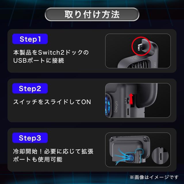 Nintendo Switch2 対応 小型 冷却ファン 熱暴走防止 送風機 簡単取り付け 静音 薄型 強力 クーラー アクセサリー 外付け ブラック