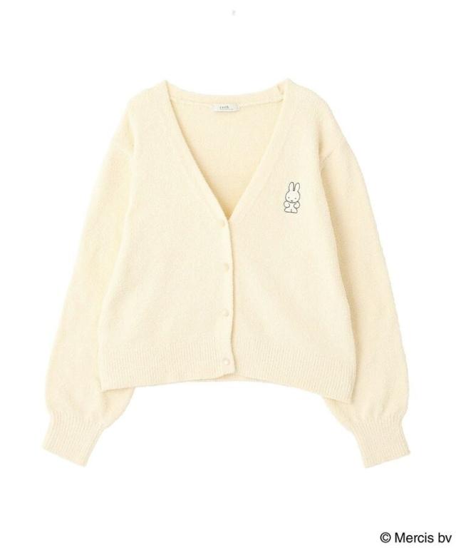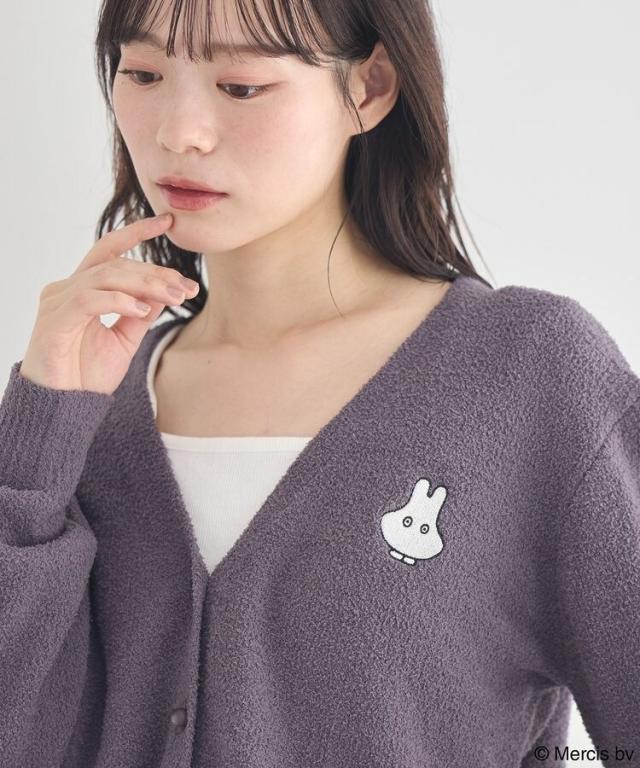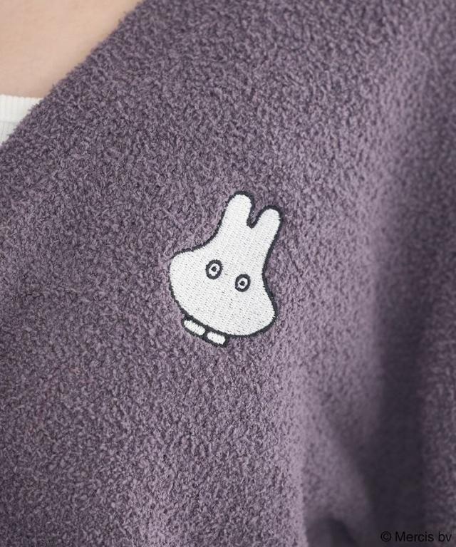 ふんわりVネックで大人かわいい毎日にVネックラインですっきりした印象を作りながら、ふんわりとしたもこもこ素材がやさしく包み込むカーディガンです。柔らかな肌触りで着心地が良く、長時間の外出やおうち時間でも快適に過ごせます。ミッフィーやボリスのワンポイント刺繍がさりげないアクセントになり、シンプルな着こなしを程よく可愛らしく見せます。やや短めの着丈と緩やかな袖のボリュームでボトムスとのバランスが取りやすく、デニムやスカートに合わせてカジュアルに着回せます。季節の変わり目の羽織りとしても便利で、普段使いからおでかけまで幅広く活躍します。透け感[なし]