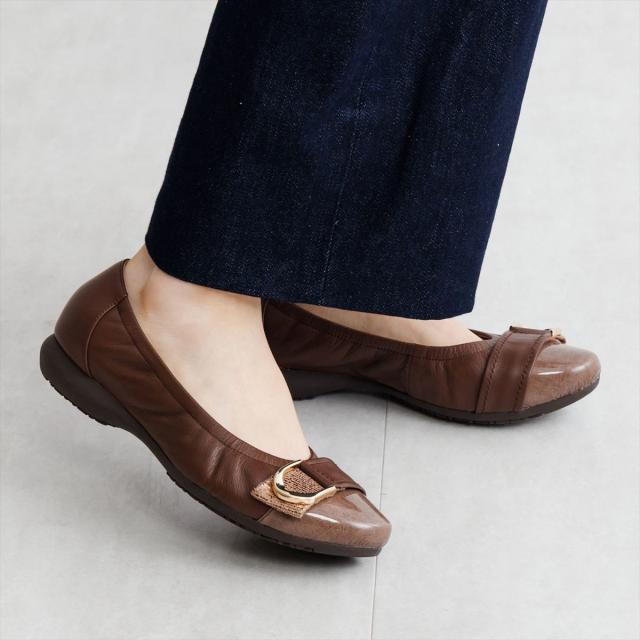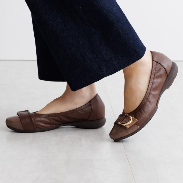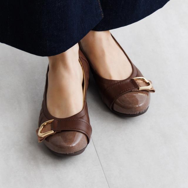 中底全体に入った低反発クッションが足にフィットし、長時間の歩行でも快適な履き心地です。 グレイッシュなカラーが上品なブルー、ゴールドのメタルパーツが華やかな印象のブラウン。