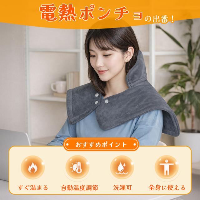 電熱ポンチョ 肩当て ホット パッド 速暖 10段階温度 タイマー 首 肩 腰 足 お腹 電気 ポンチョ ヒーター 洗える 45-70℃ 肩こり 冷え対策 電熱 洗濯可 温度 背中 全身 肩掛け 冷え性 あったか ケープ 暖かい 肩温 ひざ掛け 過熱防止 節電 省エネ 暖房
