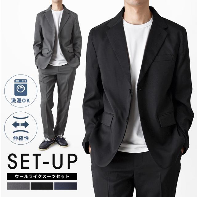 スーツ セットアップ メンズ ウールライク 秋冬 暖か 上下セット テーラードジャケット パンツ 紳士【送料無料】【1-E13F】