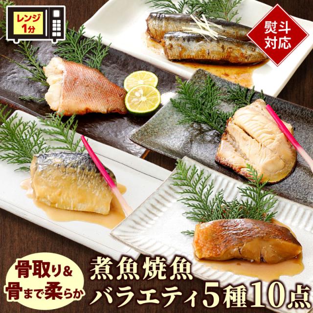 煮魚 焼魚バラエティ5種10点セット 詰め合わせ 骨取り 骨まで柔らかい 骨とり 魚総菜 切身 切り身 お惣菜 おかず レンジ 調理済み ギフト プレゼント お祝い 内祝い 化粧箱