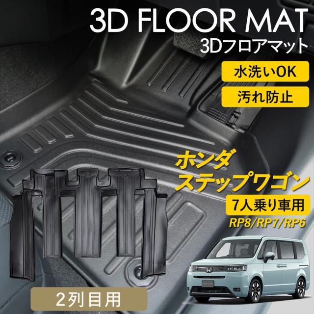ステップワゴン 3D フロアマット ラグ マット 3Dマット 2列目 2列目用 後席 マット ガソリン車 RP6 RP7 RP8 7人乗り ピッタリ 雨 雪 汚れ防止 防水 お手入れ簡単 丸洗い 置くだけ 車種専用設計 カーマット STEPWGN RP系 HONDA ホンダ