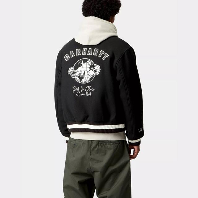 WORLD CLASS VARSITY JACKET カーハートWIPのアイデンティティを象徴するバーシティジャケットは、重厚感のあるウール混フェルトを採用した秋冬シーズンの主役を飾る一着。