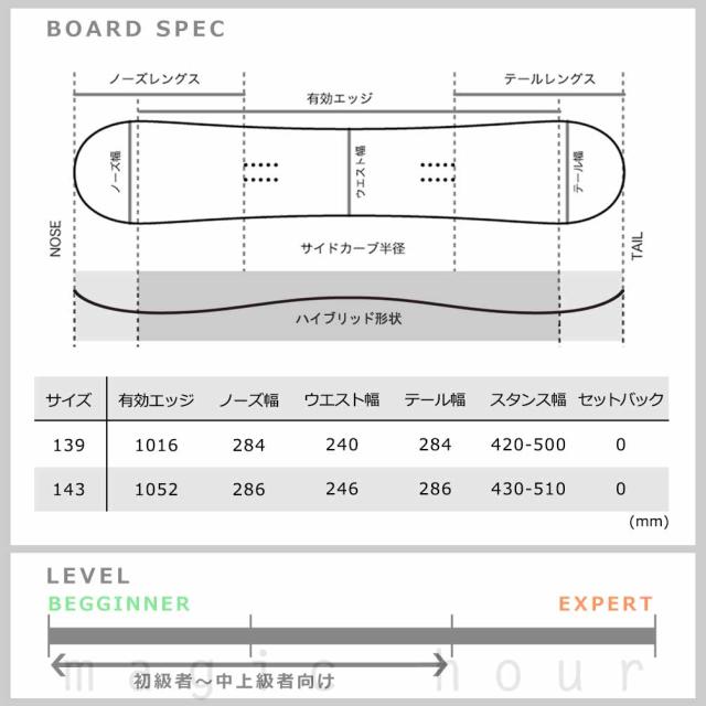 ソフトフレックス&ツインチップでグラトリやパークでの自由な操作性を楽しめる! センターはキャンバーで両足外側からロッカーになった人気のハイブリッド構造! キャンバー特有の反発力と安定感を持ちつつ回転性がよくトリックを仕掛けやすい。ひっかかりが少なくフリーランはもちろんグラトリやパウダー、パークまで幅広くチャレンジしやすい♪ 形状: ハイブリッドキャンバー/ Wロッカー, ツインチップ, SW構造 |